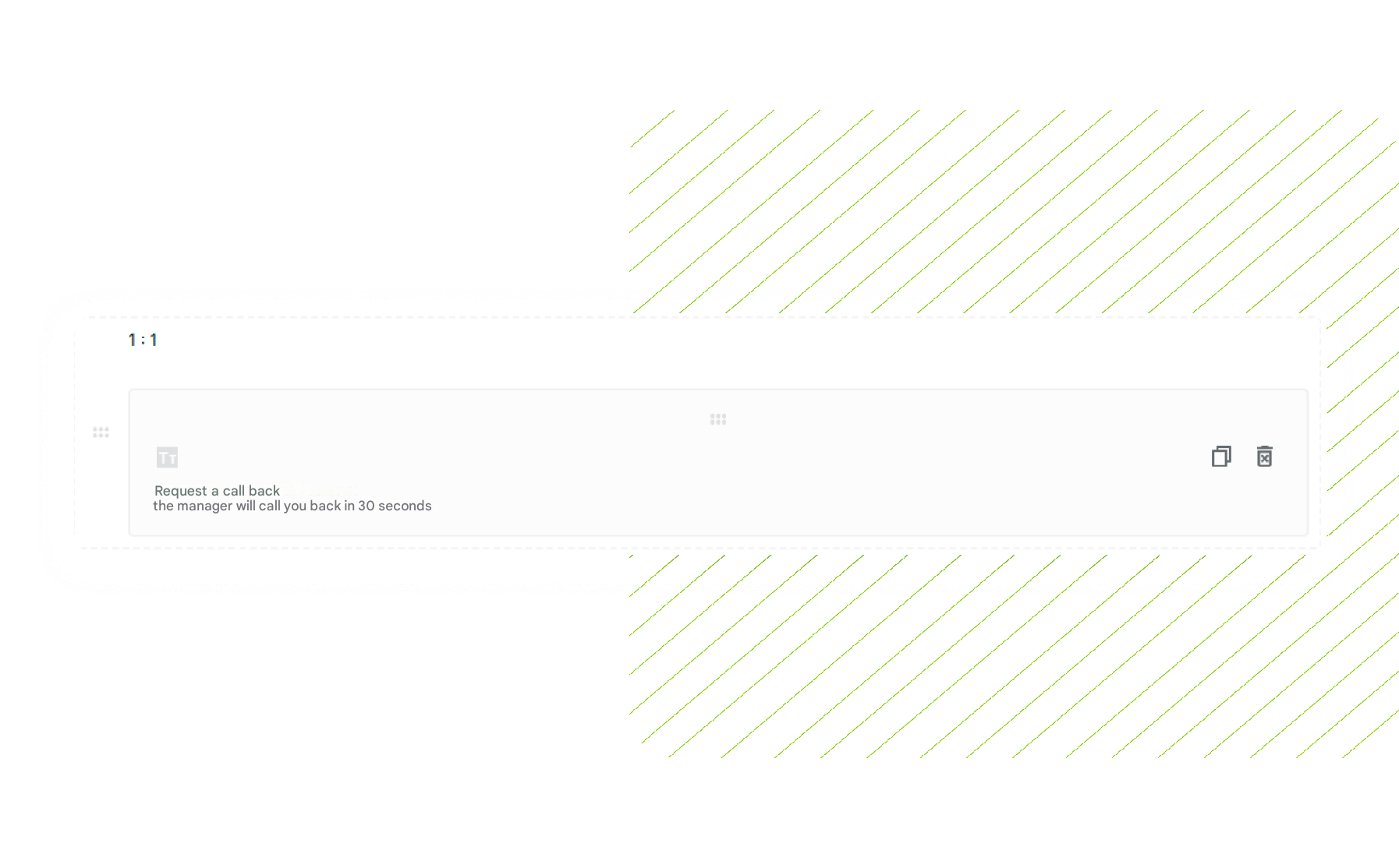 Help visitors with the choice to remove doubts about the purchase. Use the callback order form. Increase conversion and audience loyalty with instant communication. Drag and drop the required fields in the constructor, configure the form display and collect data into the built-in CRM system.
