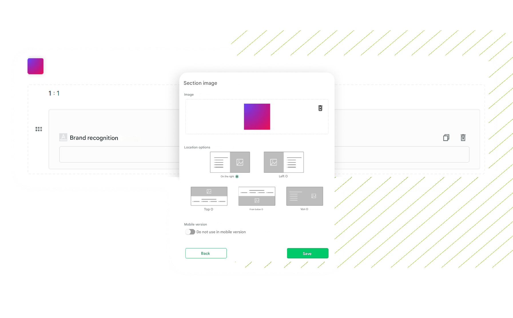 Add images for the section. Choose location options or set as background. If necessary, you can disable display in the mobile version