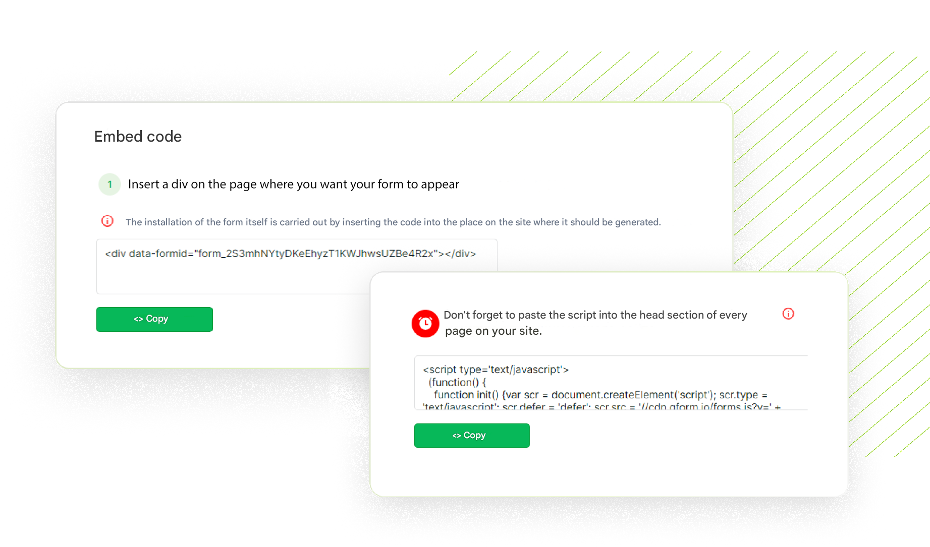 Inserting a form is very simple. Copy the code inside the desired page or site element