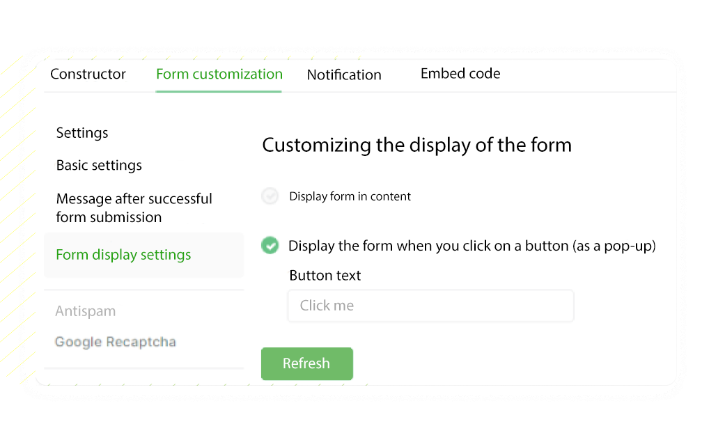 After installing the code, a button will appear on the page that opens the form in a modal window