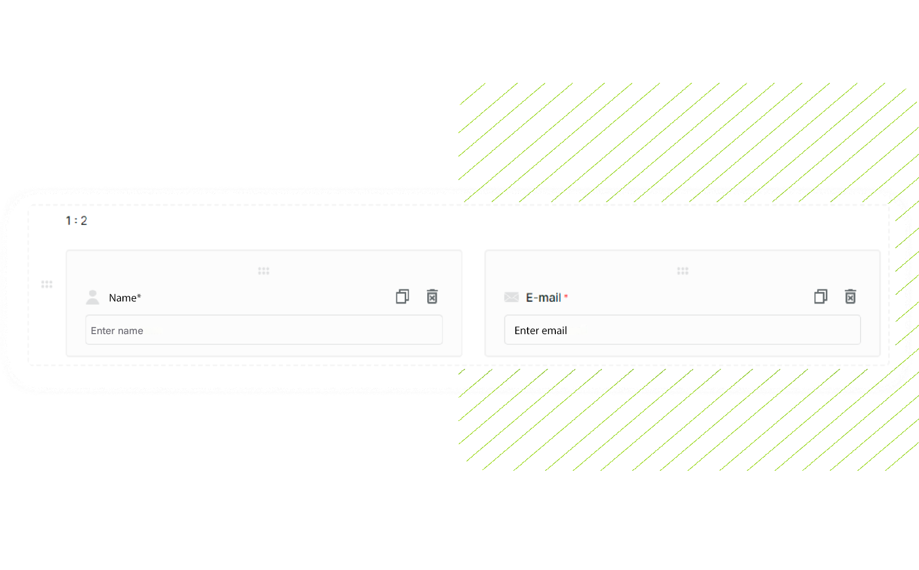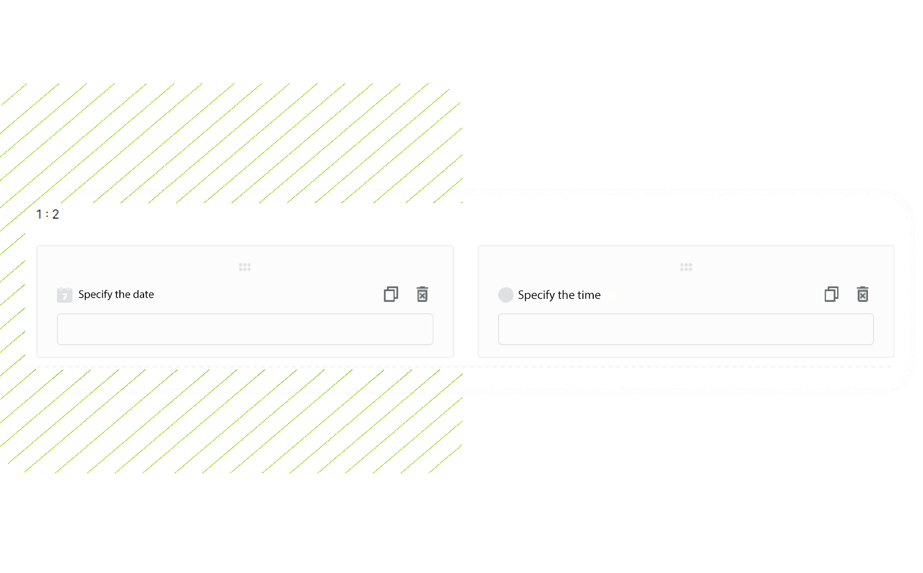 Add fields based on the goals of your form, which will help you collect more accurate information about the client's wishes. In our example, these are Date and Time fields placed in one line, which enter details into the client's request