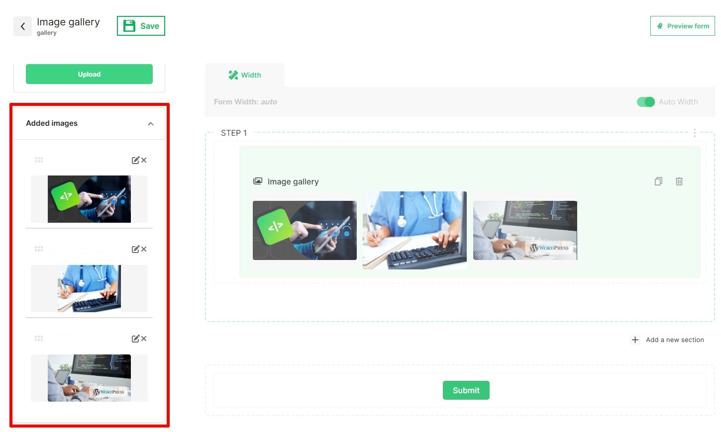 A photo gallery in the form makes interaction with users more effective. Especially if you include customer reviews or successful cases. Visual content is easier to perceive and remember than text, it creates an emotional connection and increases trust in the brand. With it, the form becomes more attractive and dynamic, and this has a positive effect on conversion. Finally, high-quality photos speed up the decision-making process, providing the necessary information immediately, without going to other pages.