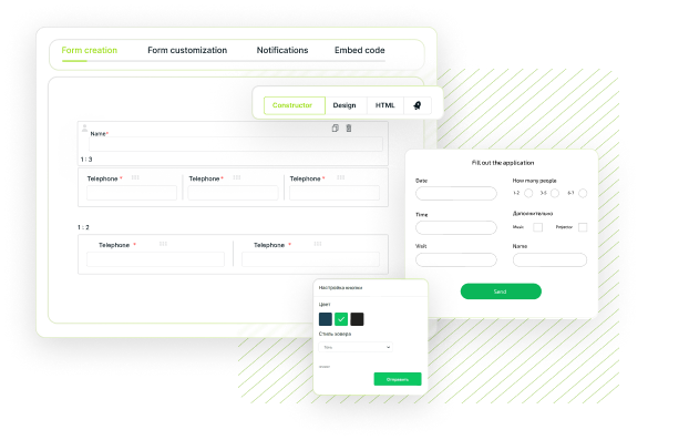 QForm creates feedback for the needs of any business: classic call-back, application forms, booking questionnaires, orders and much more. The QForm widget is a powerful and simple business tool that allows you to collect applications, survey visitors, and study the opinion of the audience